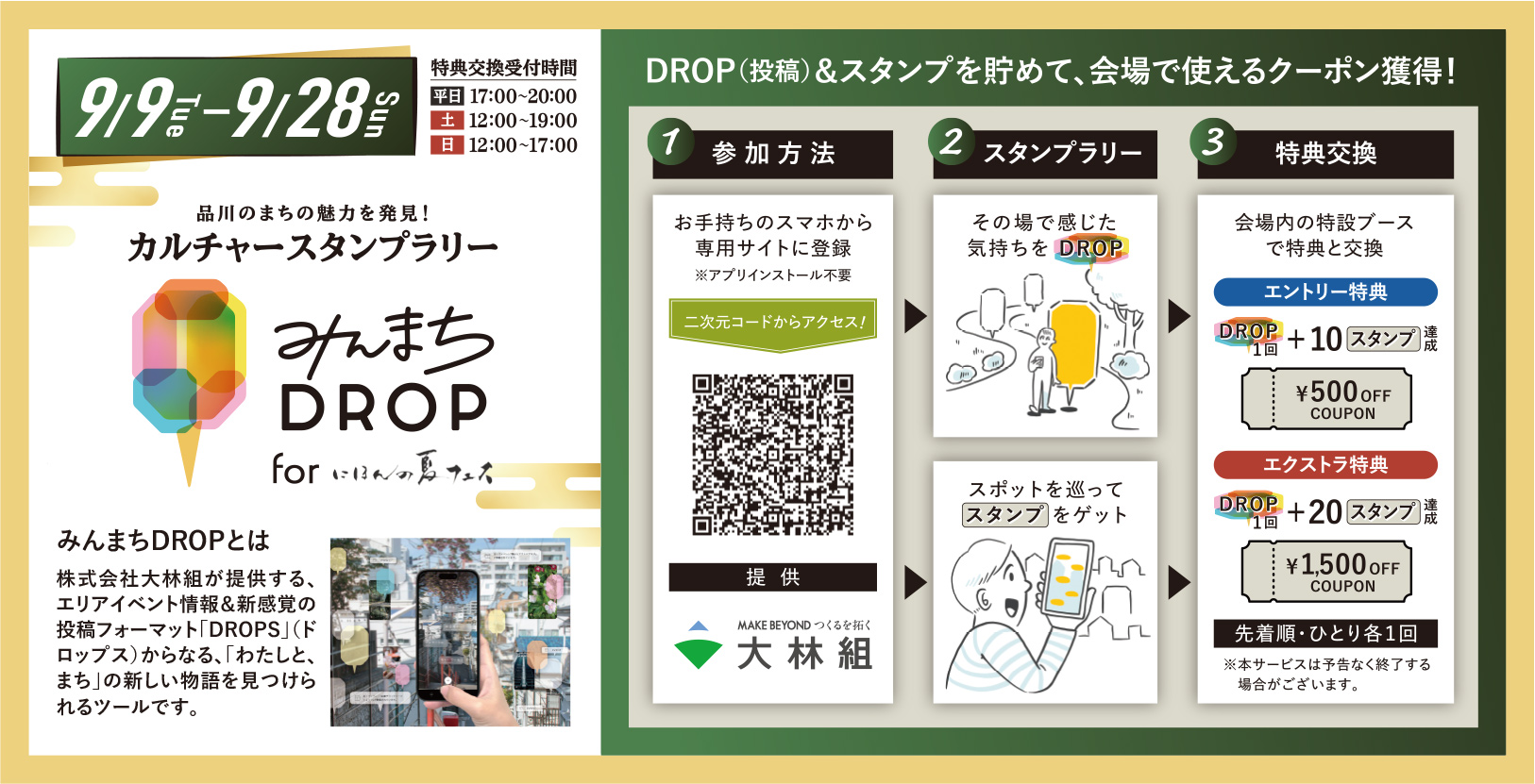 DROP 大林組 DROP 大林組 App store Google Play Peatixへアクセス App store Google Play Peatixへアクセス